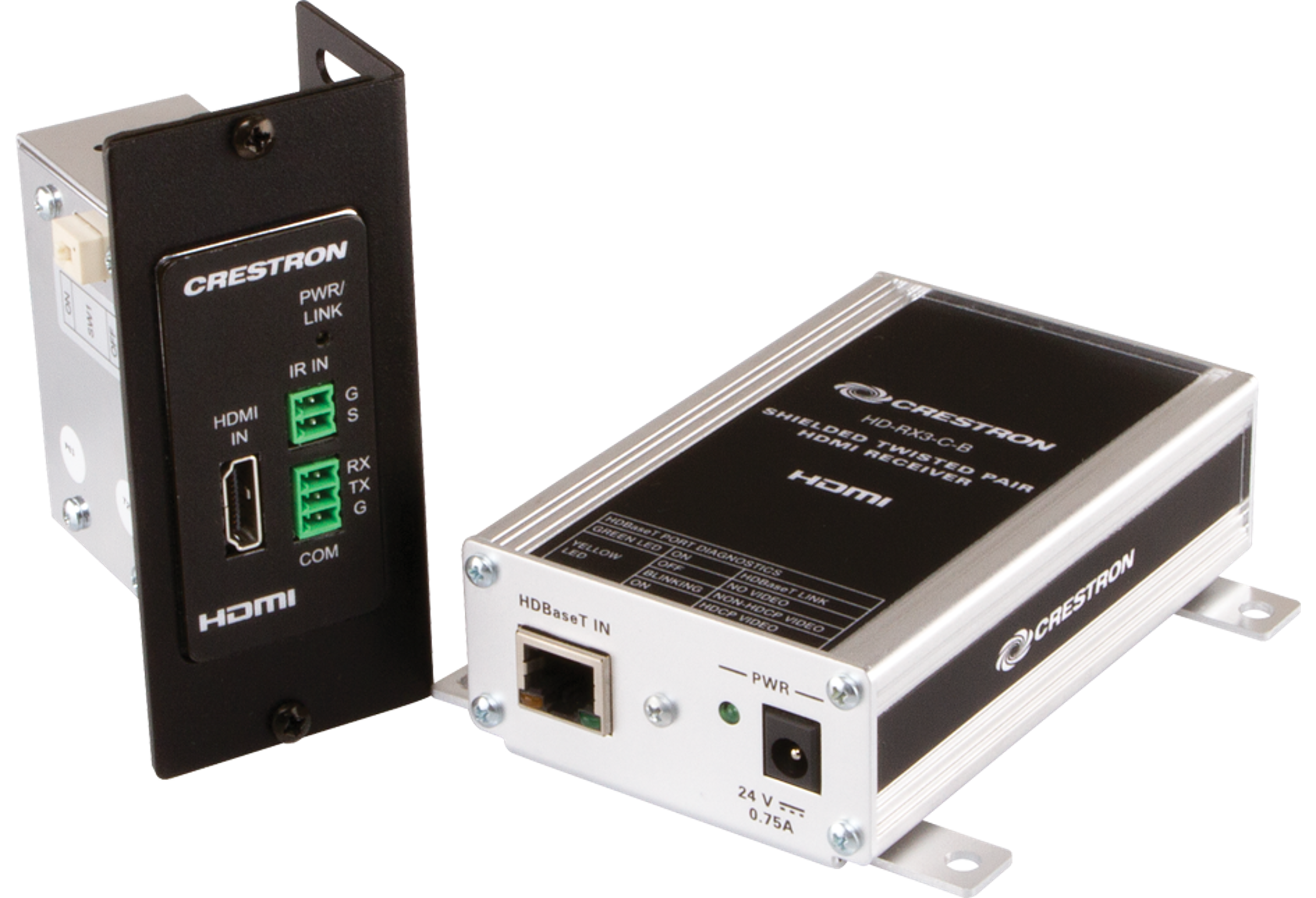 - The HD-EXT3-C is composed of one transmitter and one receiver (HD-TX3-C and HD-RX3-C, both included). The transmitter can be mounted in a single-gang wall box, or attached to any flat surface or inside an equipment rack. The compact receiver can be mounted discreetly behind a display device or wherever else it needs to go. Linking the two components requires just one CAT type cable[1]. Crestron offers the cable and connectors for a complete, easy, and reliable wiring solution. A range of professional AV interface cables and wall plates is also available to complement the HD-EXT3-C for a total custom installation solution.