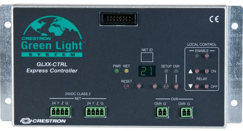 The GLXX-CTRL is a Crestron® Green Light Express® control module which controls GLXX-SW8, GLXX-SW16, GLXX-HDSW8, and GLXX-HDSW16 relay modules. The module is part of a complete Crestron engineered GLPX Green Light Express panel.For more information on Crestron Green Light commercial lighting products, please contact Crestron Sales Support Services.