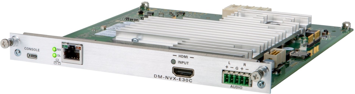 The DM-NVX-E30C is a basic encoder card with one HDMI input that allows a laptop computer, camera, or other media source to be connected via an HDMI cable and then transmitted over the network to one or many decoders.1 Compatible with DM NVX products that can function as decoders, the DM-NVX-E30C can be used in any DM NVX network AV design.
