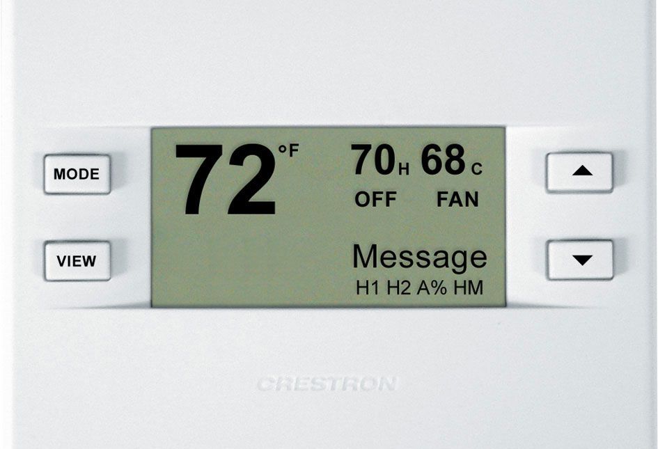 - Multiple Crestron thermostats may be networked via Cresnet® to any 3-Series® control system, including the DIN-AP3, enabling global temperature and humidity adjustment from any thermostat. Automation functions such as lighting, motorized blinds, or lawn sprinklers can be accessed through two custom remote function pages, and customized text messages can be sent to the LCD display to provide maintenance reminders and other alerts.