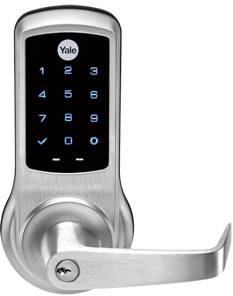 The Yale® nexTouch™ Lock offers an ANSI/BHMA Grade 1 certified access control solution for commercial applications. Featuring infiNET EX® wireless communications, nexTouch integrates with a Crestron® control system to enable secure remote monitoring and entry management.The CLK-YL-NTB620-CR2 lever lock features a capacitive touchscreen keypad and comes as a complete lockset with a standard cylindrical lock and lever pair. It is designed for installation on a standard 1-3/4 inch (44 mm) thick steel or wood door, and conforms to modified ANSI/BHMA A156.115 and A156.115-W specifications. It is suitable for both interior and exterior doors. A selection of four designer finishes is offered.
